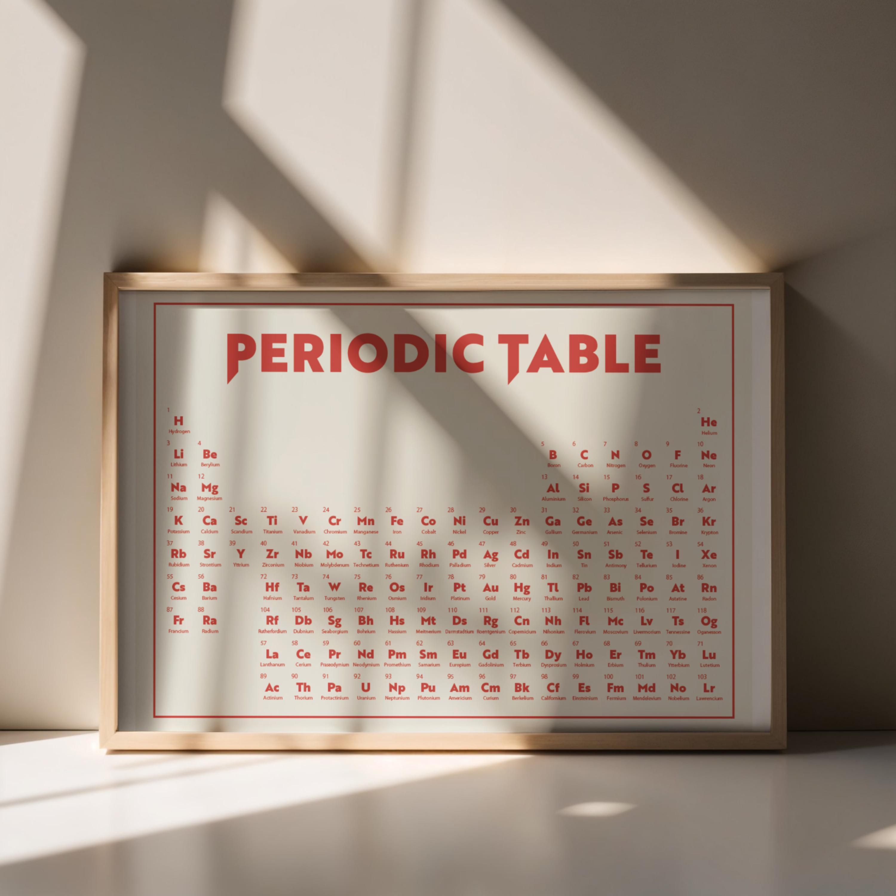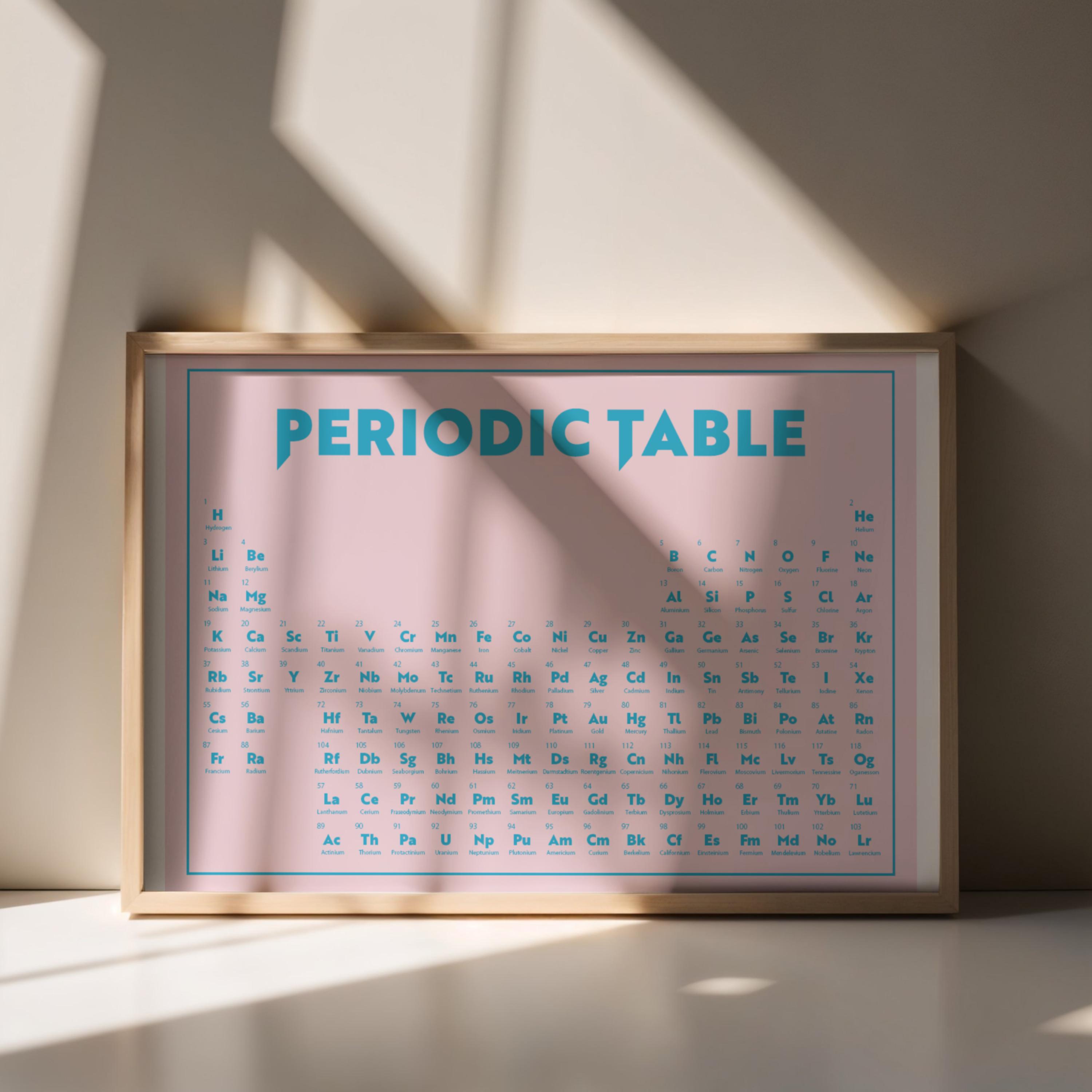 Periodic Table Poster, perfect for any child's room or a science enthusiast's workspace. This poster serves not just as a decoration but also as an educational tool, fostering learning through the beauty of chemistry.